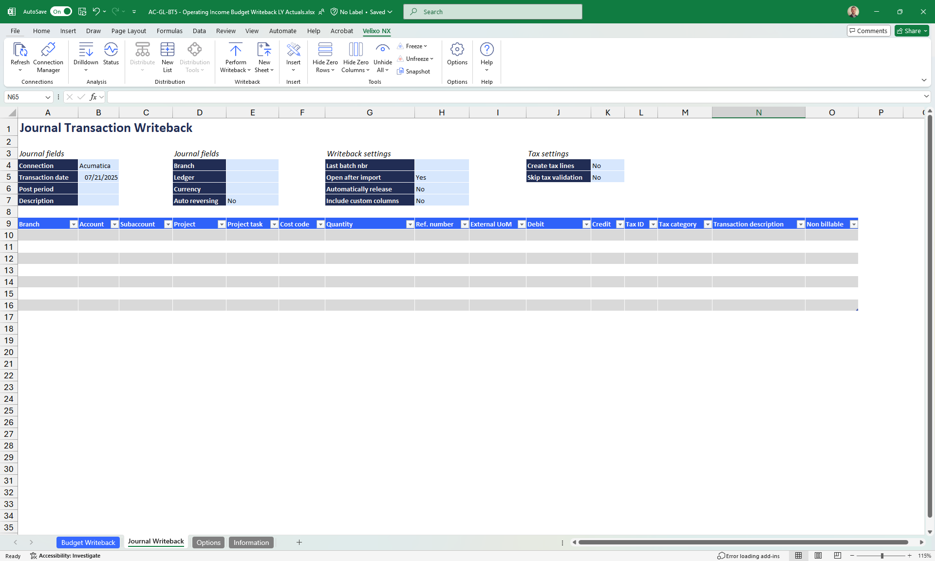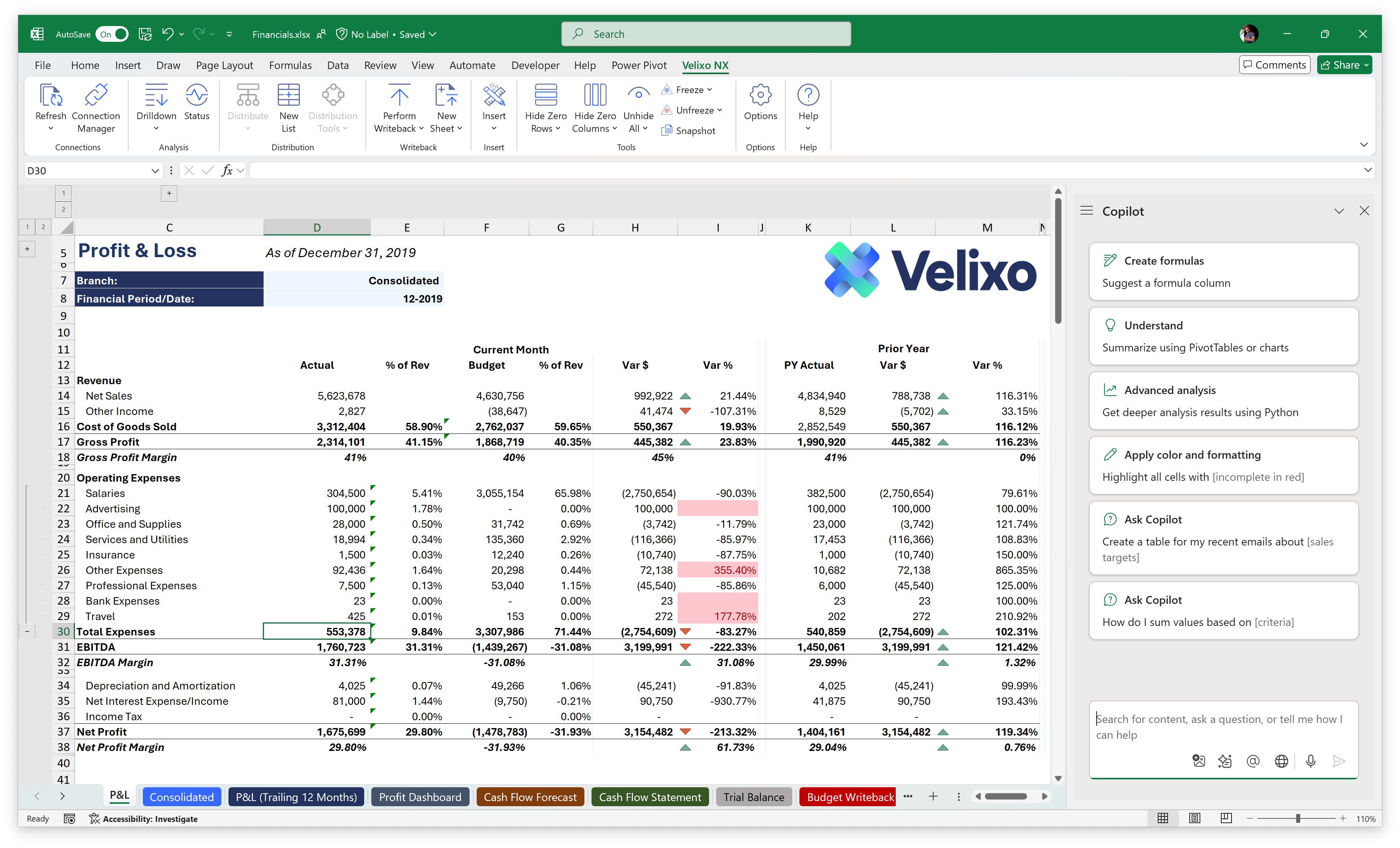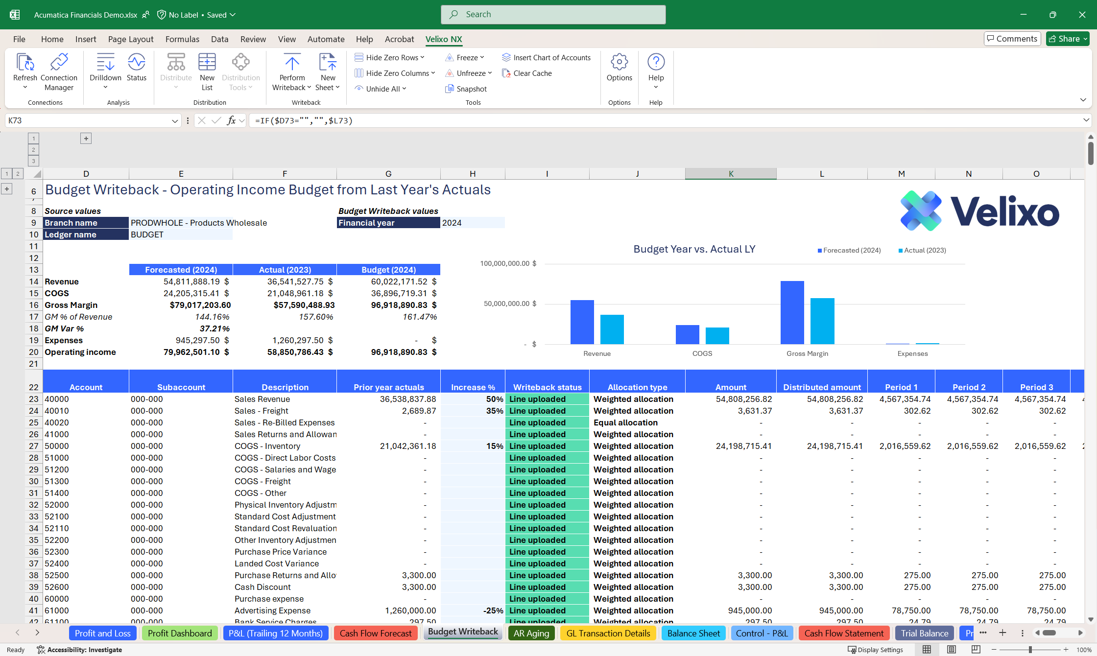 Velixo se connecte directement à Acumatica, de manière bidirectionnelle, et vous offre une gamme de fonctionnalités optimisées pour créer des rapports, analyser et interagir avec vos données financières, opérationnelles ou de projet en temps réel, le tout dans le logiciel Excel que vous aimez et connaissez déjà.
